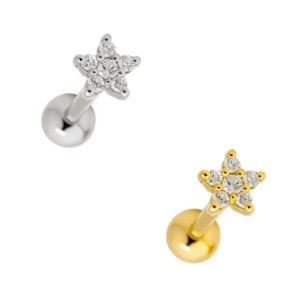 Micro Reto Mini Flor de Ouro 18k Cravejada de Zircônias