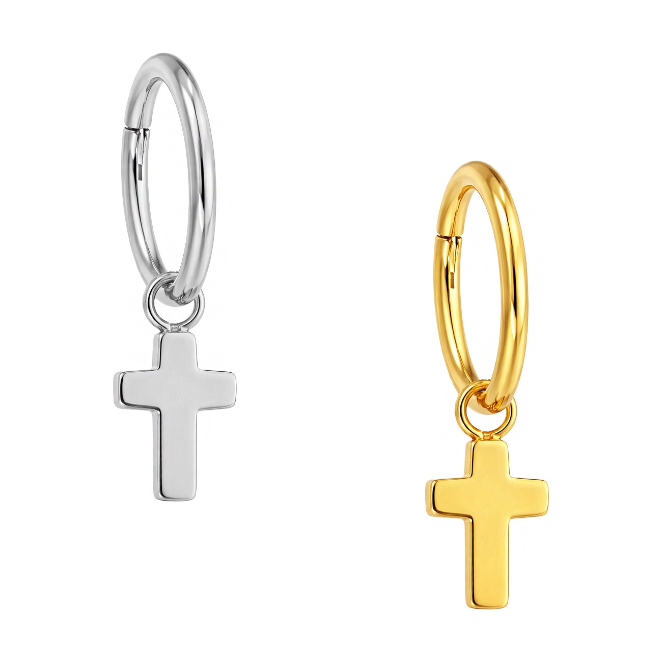 Argola, Argolas de Titânio, Clicker, Cruz, Pingentes, PVD Gold, Segmento, Titânio