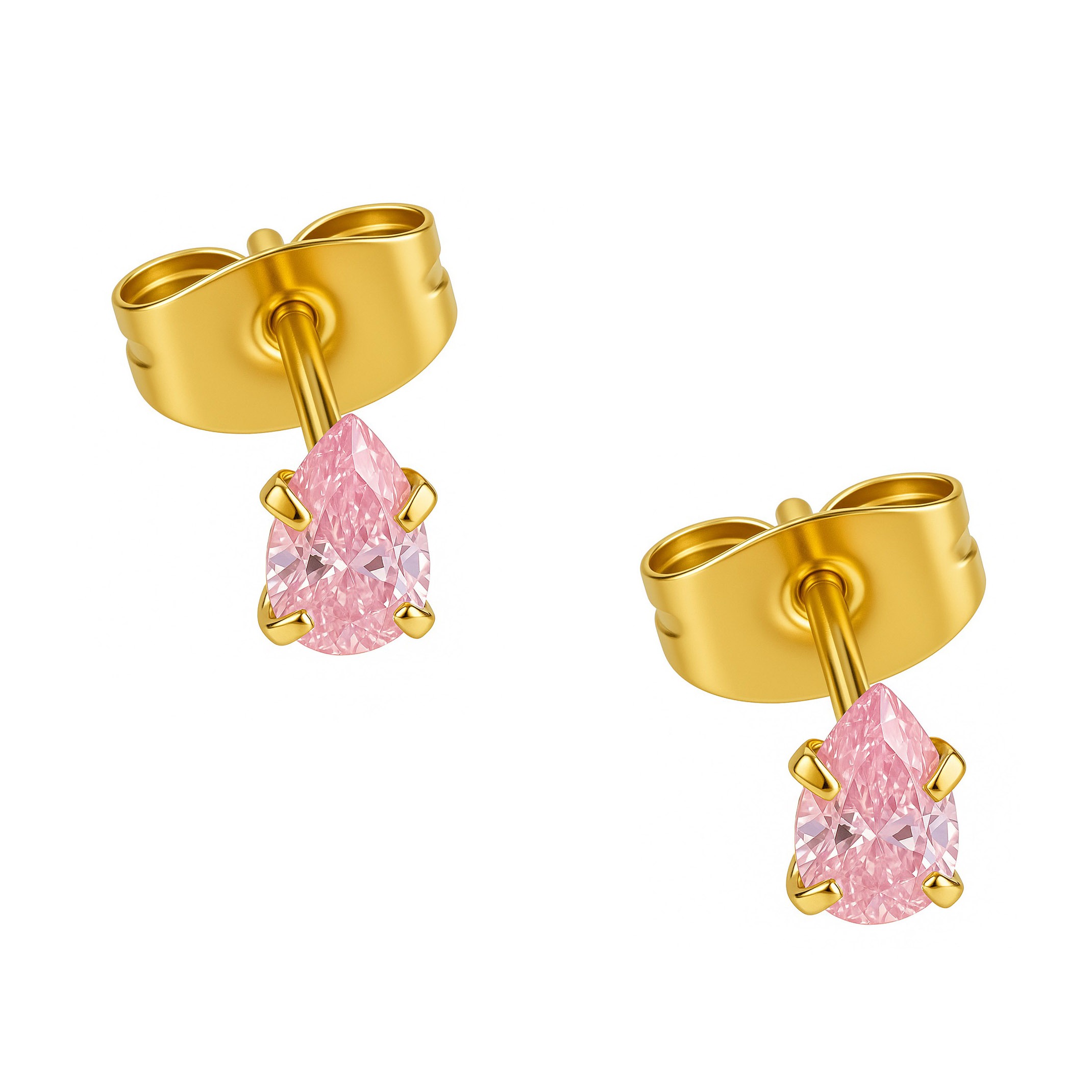 Aço Cirúrgico, Brincos, Gota, Lóbulo, PVD Gold, Zircônia