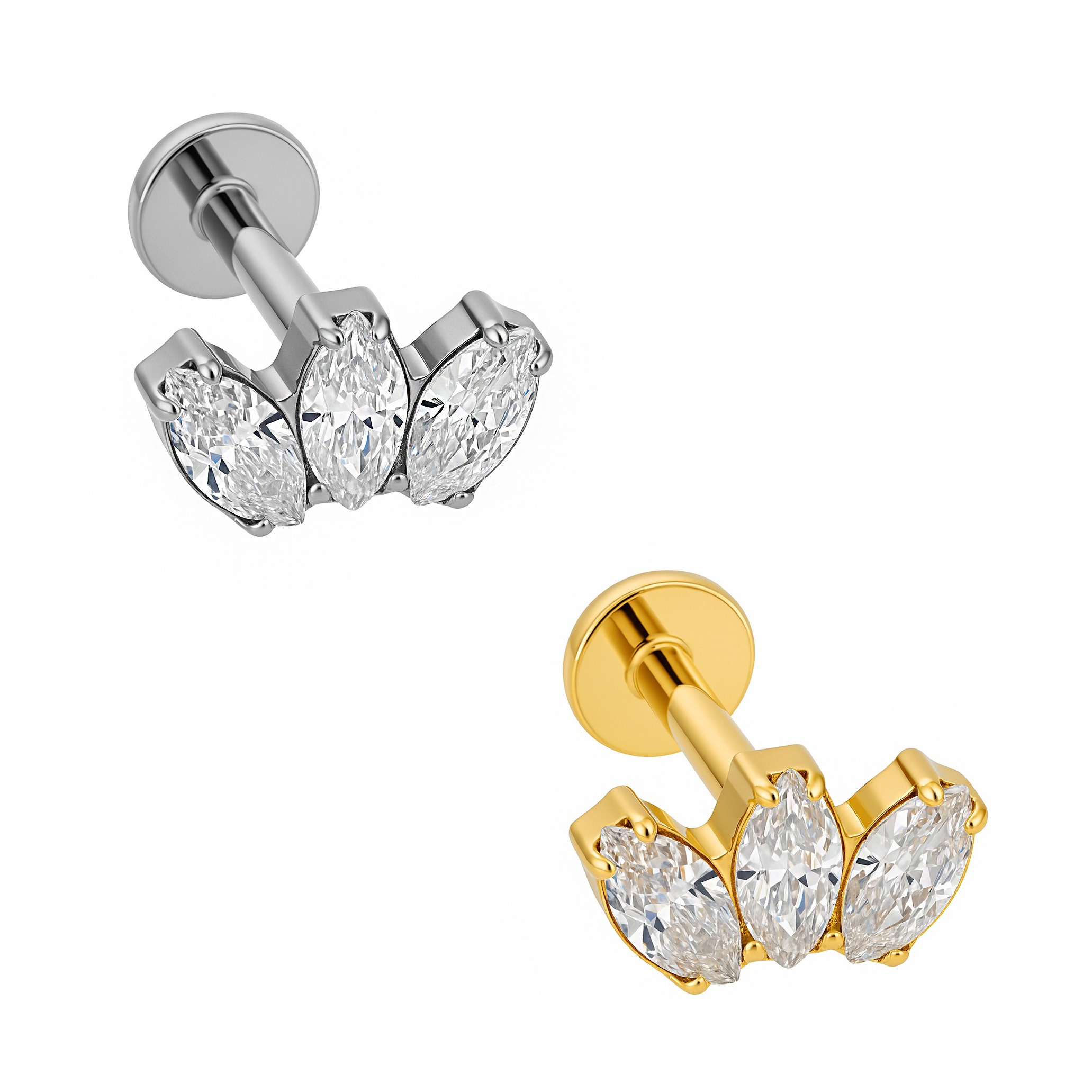 Tags: GEM, Gold, Labret, marquise, Titânio, Zircônia