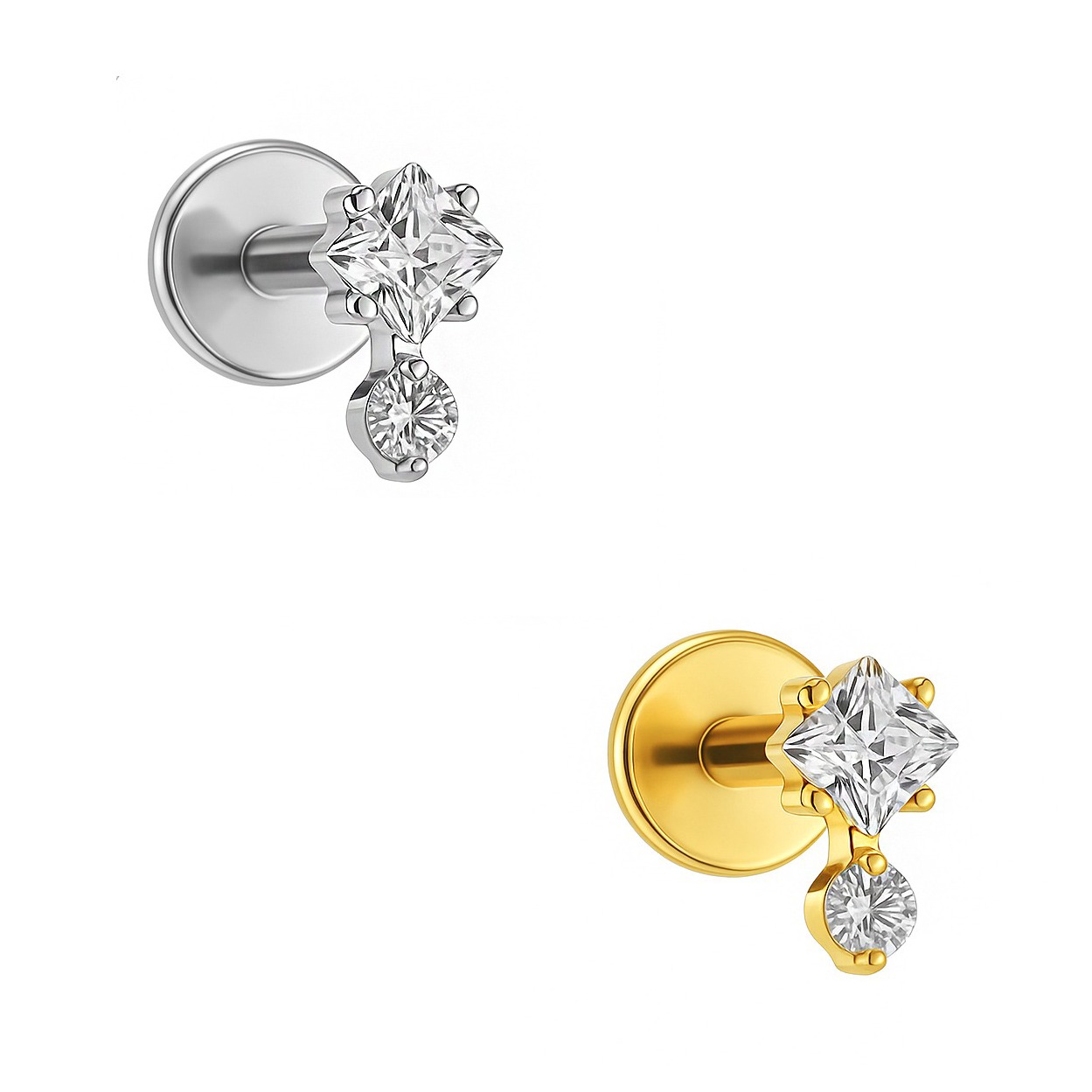 Helix, Labret, Labret Rosca Interna, Micro Piercings, PVD Gold, Quadrado, Rosca Interna, Titânio, Tragus, Zircônia