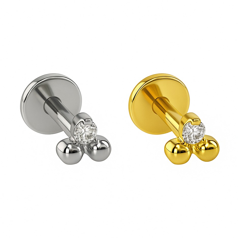 Helix, Labret, Pin Push, PVD Gold, Titânio, Tragus, Trillion, Zircônia
