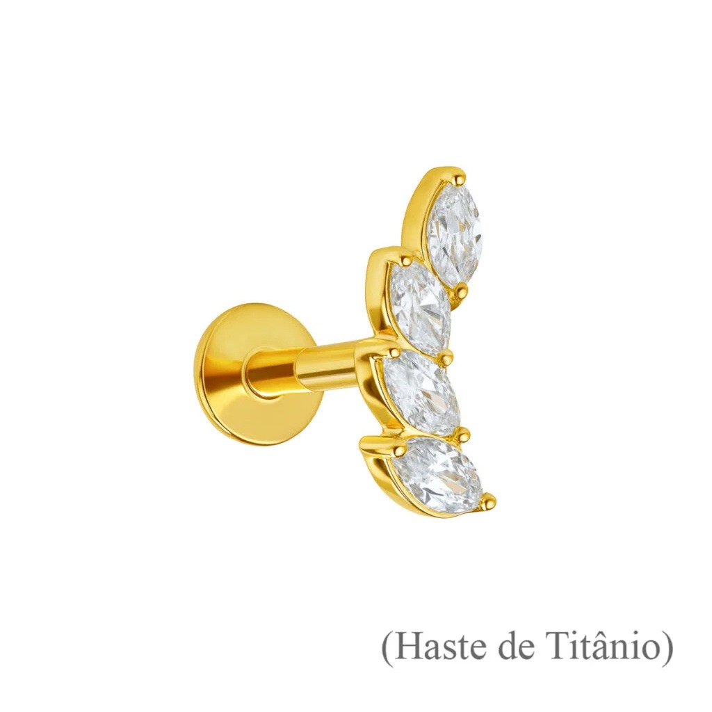 Topo Cluster de Navetes de Brilhantes em Ouro 18k c/ Haste de Titânio Labret