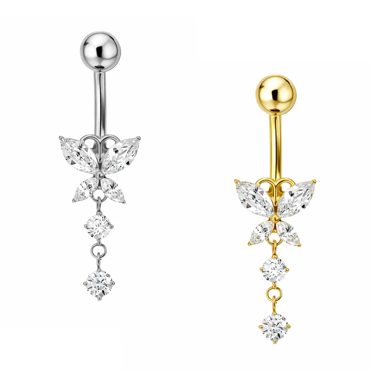 Descubra o charme único do piercing de umbigo em forma de borboleta, feito em Titânio ASTM F136! 🦋 Com detalhes cravejados em CZ e opções de cor natural ou PVD Gold, esse modelo é perfeito para encantar seus clientes e garantir vendas incríveis. Um item essencial que não pode faltar na sua loja! ✨